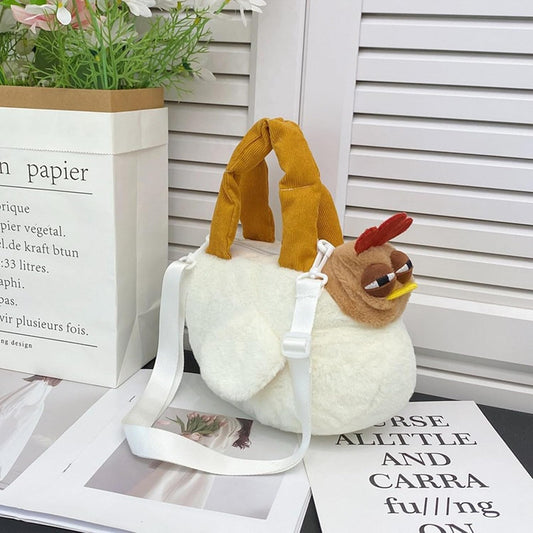 🔥50% OFF Today Only! Chicken Handbag, Funny Animal Bag, Chicken Purse, Rooster Shoulder Strap Fuzzy Cute Mini Makeup Pouch, Novelty Plush Hen Bag