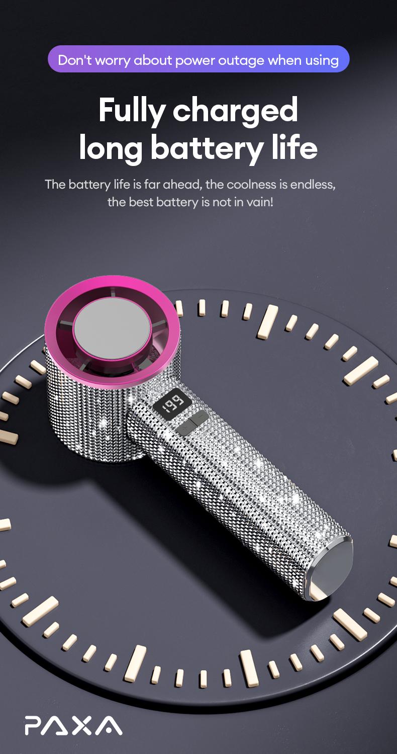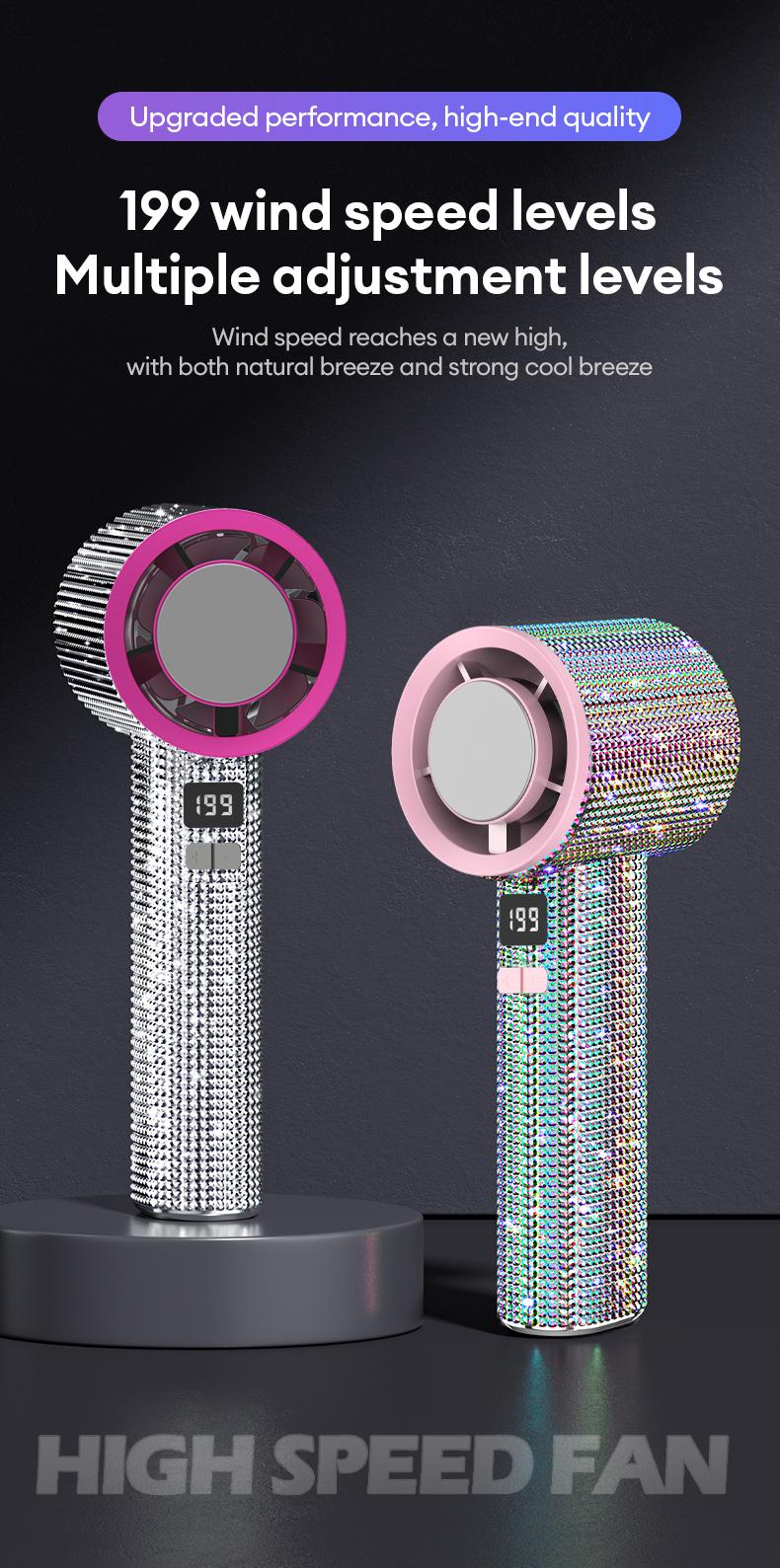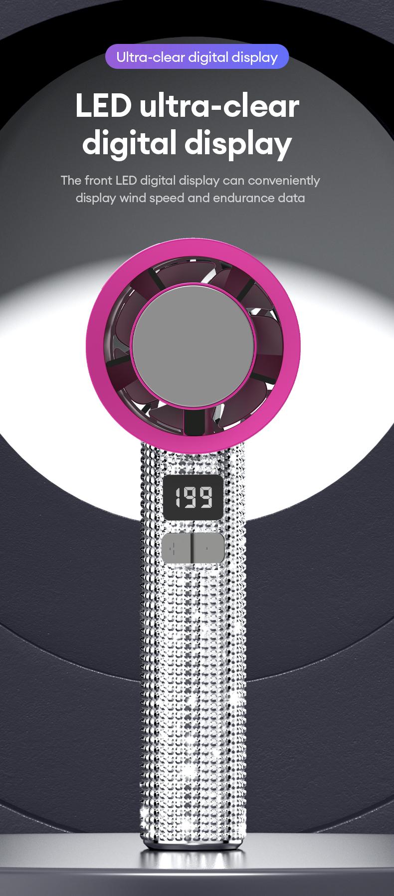 🔥Final 3 Hours – 50% OFF!Full Diamond Luxury Craftsmanship Portable Handheld Turbo Fan, 3 Gear Wind, Rechargeable Long Battery Life Hand Fan With Digital Display For Outdoor Activities, Travel, Office, Wonmen's gift
