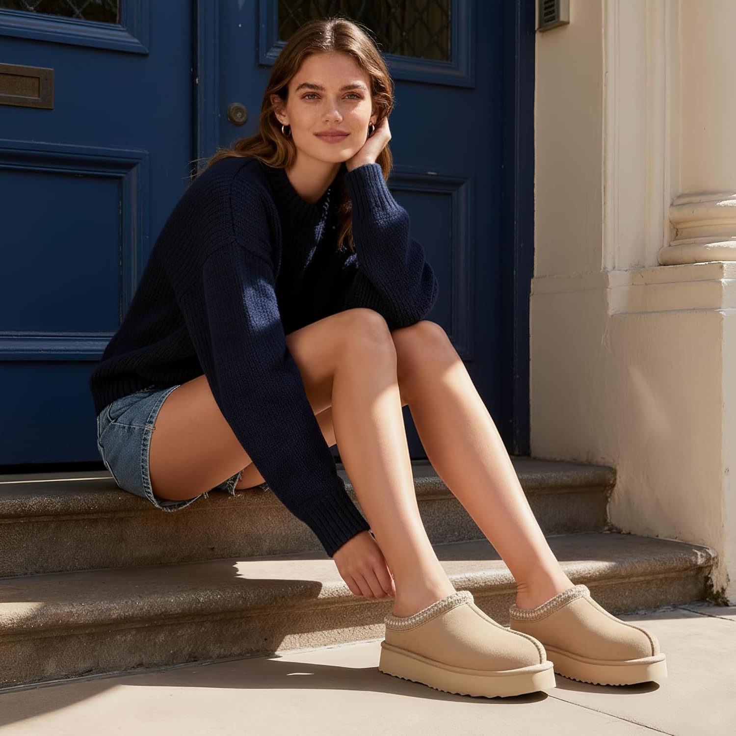 🔥HOT SALE 63% OFF🔥Genuine Suede Platform Slippers for Women Fuzzy Winter Warm Shoes Indoor Outdoor